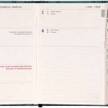 Stílusos heti napló mágneses zárással, amely áttekinthető tervezést kínál horizontális elrendezéssel és jegyzetek számára helyet. Tartalmaz havi áttekintéseket, ideális nyaralások tervezéséhez, ünnepnapokkal és névnapokkal.