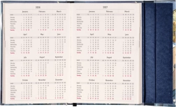 A napló havi áttekintéseket is tartalmaz, amelyek ideálisak a nyaralások és szabadságok megtervezésére, valamint tartalmazza a nemzetközi ünnepeket.