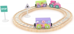 Ez a fa vonatpálya készlet ideális első vasút a legkisebbeknek. A kislányoknak szánt vonzó színek és dizájn könnyen bevonják a gyerekeket a játékba, és fejlesztik képzelőerejüket. Az anyagok környezetkímélők és vegyszermentesek, így mindennap biztonságos játékot biztosítanak.