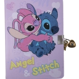 Kreatív, zárható füzet Stitch és Angel motívummal, Crystal Art technikához. A teljes készlet tartalmaz egy vonalazott A5-ös füzetet (48 oldal) és mindent, ami a csillogó kövekkel való díszítéshez szükséges az egyedi, fényes megjelenésért.