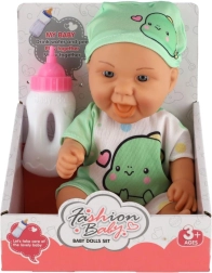 Aranyos baba valósághű részletekkel, ideális kis anyukáknak. Tartalmaz szilárd testet és üveget etetéshez.