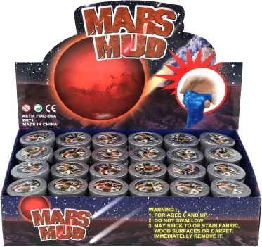 A Mars Mud fémes nyálka a gyerekeknek és a felnőtteknek egyaránt örömet okoz. Kellemes, lassan folyó állagú, amely kiválóan formázható, nyújtható és gyúrható. Az átlátszó pohár kiemeli az egyedi színörvényeket és a fémes csillogást.