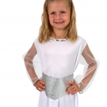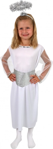 Ajándékozza meg gyermekeit örömmel és szépséggel ezzel az angyali jelmezzel, mely garantáltan elbűvöl minden karneválon vagy ünnepségen. A jelmez kényelmes anyagból készült, amely biztosítja, hogy gyermeke kényelmesen érezze magát viselése közben. Az ezüst-fehér kombinációnak és a bájos részleteknek, mint a glória és a öv, köszönhetően kislánya valódi angyalnak tűnik majd.