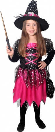 Varázslatos fekete-rózsaszín gyerek jelmez boszorkány 4-6 éves korig csillagokkal.