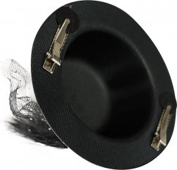 - díszítve van fekete szalaggal, tollal és tüllel a kifinomult megjelenés érdekében