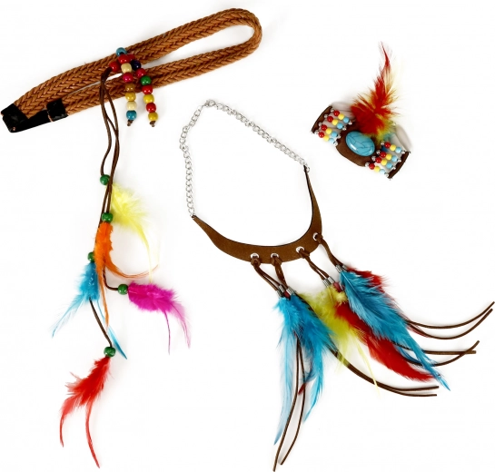 Tökéletesítse indián jelmezét ezzel a fantasztikus kiegészítő készlettel, amely tartalmaz egy nyakláncot, egy karkötőt és egy fejpántot.