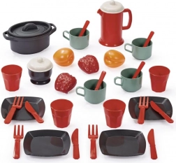 - Tányérok, evőeszközök, poharak, csészék, fedeles kanna, fedeles edény, gyümölcsök