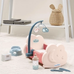 - Kiegészítők: tartalmaz ágyforgót, cumisüveget, bilit és fésűt.