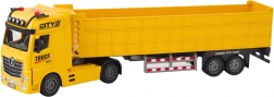 A sárga tehergépjármű hatékony és dinamikus modellje, amit minden nagy jármű rajongó kedvelni fog. A valósághű funkciók, mint például a mozgó pótkocsi, lehetővé teszik a szállítási vagy építkezési jelenetek játékát.