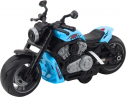 Ez a modern kék motorkerékpár a fiatal motorrajongók számára készült, akik izgalmat és dinamikus szórakozást keresnek. Tartós műanyagból készült, széles kerekekkel és ergonomikus markolatokkal van felszerelve a stabilitás és a kényelem érdekében. Designja a klasszikus egykerekű motorkerékpárok ihlette, valósághű motorral és karosszériával, amely tovább növeli az autentikusságot.