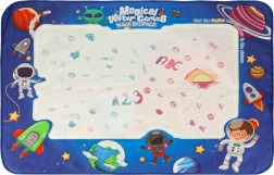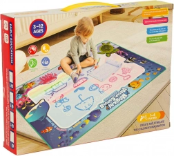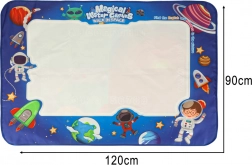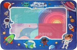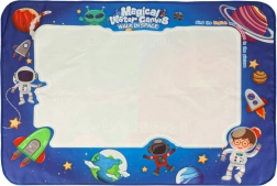 Ez a vízi festő terítő biztonságos és szórakoztató módot kínál a gyermekei kreativitásának fejlesztésére. A 90 x 120 cm méretű terítőn a gyerekek kozmikus képeket alkothatnak és szórakozhatnak a mellékelt eszközökkel rendetlenség nélkül. A készlet része a vízi markerek, bélyegzők és sablonok, amelyek támogatják a képzeletüket.