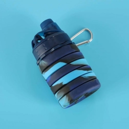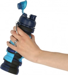 Összecsukható szilikon vízpalack fogantyúval 500ml kék