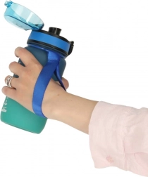 Sportpalack szívószállal, 600 ml-es űrtartalommal, attraktív kékeszöld színben, ideális társ minden sportoló számára. A palack kényelmes fogantyúval és okos nyitórendszerrel van felszerelve.