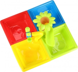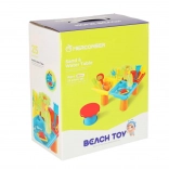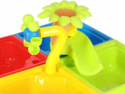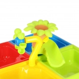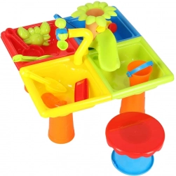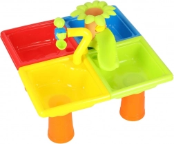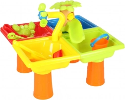 A vizes asztal és homokozó egyben ideális a kertbe, teraszra vagy erkélyre. Az asztal elválasztott részei lehetővé teszik a gyerekek számára, hogy játszanak vízzel és homokkal egyaránt. A gyerekek saját vízi kikötőjüket építhetik és elűzhetik az unalmat például a strandon is.