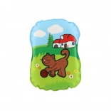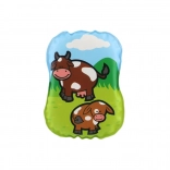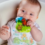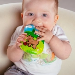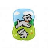 A párna ftalátmentes, biztonságos anyagokból készül, és tanúsított újszülött kortól. Több aranyos állatos minta közül lehet választani, amelyek támogatják a vizuális stimulációt és az első megismerést.