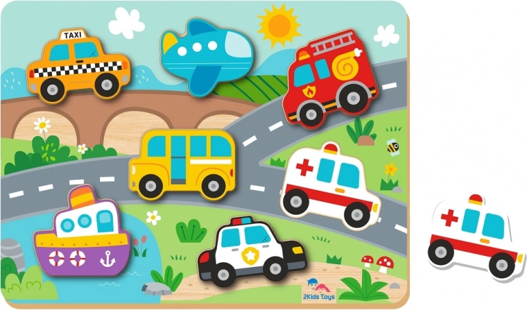 Ez a bebújós puzzle nagyszerű eszköz a finommotorika és a közlekedési eszközök megismerésének fejlesztésére a gyermekeknél. Tartalmaz 7 bebújós darabot és színes illusztrációkat, ami nemcsak szórakoztatóvá teszi ezt a játékot, hanem szép díszítés is a gyerekszobában.