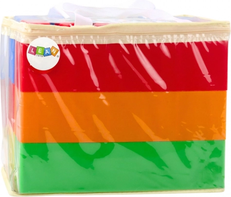 Színes nagy kocka készlet matricákkal, praktikus táskában, ideális gyerekeknek. 6 kockát tartalmaz, ösztönzi a kreativitást.