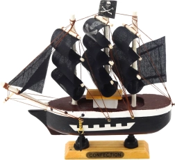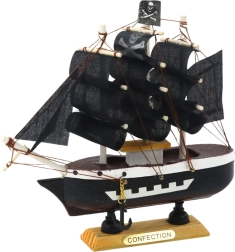 A kalózok világa megelevenedik otthonában ezzel a dekoratív kalózhajó modellel. Ez a kicsi, de részleteiben kidolgozott modell a híres kalózhajókat idézi a kalózkodás aranykorából. Háromárbocos szerkezetével, fekete vitorláival és a zászlón látható koponyával drámai hatást kelt.