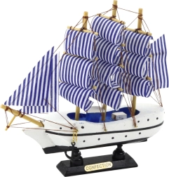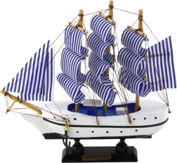 Textil vitorlák kék-fehér csíkokkal és gondosan kidolgozott kötelek dekoratívan egészítik ki megjelenését, friss tengeri szellőre emlékeztetve. Stabil alapja táblával egyszerű elhelyezést tesz lehetővé bármilyen felületen.