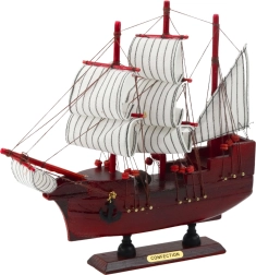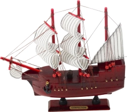 Friss háromárbocos modell kínálja a nagy felfedezések korszakának klasszikus tengeri hajójának eleganciáját. Gondosan, fából készült és kézzel befejezett, amely garantálja a magas minőséget és részletes kidolgozást. Az egész modell egy fa talapzaton áll táblával, és készen áll a lenyűgöző bemutatásra.