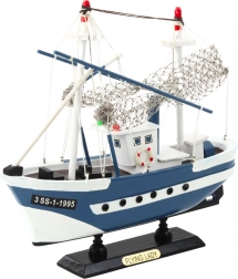 A „Flying Lady” halászkutter modell tökéletes tengerparti hangulatot hoz az otthonába. A jellegzetes kék-fehér törzsével, valósághű tetős kabinjával és dekoratív halászhálóival, ez a modell stílusos dekoratív hangsúly szerepét tölti be.