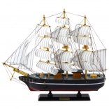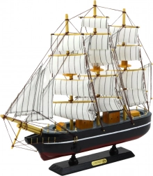 A történelmi háromárbocos egy dekoratív stílusú replika, amelyet minden tengerészeti történelem iránt érdeklődő szeretni fog. Fekete teste finom részletekkel, fehér textil vitorlákkal és az összkonstrukció eleganciát és időtállóságot kínál, amely bármely belső térnek kiegészítője lehet, legyen az nappali, dolgozószoba, vagy gyűjtői vitrin.