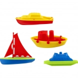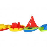 Ez a praktikus készlet négy műanyag csónakot tartalmaz különböző formákban és színekben, köztük vitorlást és motorcsónakokat. A csónakok könnyűek, tartósak, és jól illeszkednek a kis gyerekkezekbe. Úszó kialakításuknak köszönhetően tökéletesek a kádba és a gyerekpancsolóba.