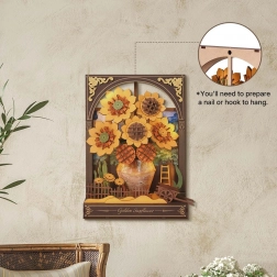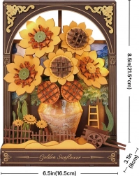 3D fa puzzle Arany Napraforgók varázslatos dekorációt kínál finom LED megvilágítással mindennapi örömökre. Pozitív hangulatot hoz otthonába és kényelmet biztosít.