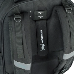 A hátizsák újrahasznosított, vízálló anyagból készült, és rengeteg fényvisszaverő elemmel van ellátva a maximális biztonság érdekében csökkentett láthatóság mellett. A hátizsák levehető derékövet és EVA hab speciális merevítést is tartalmaz, amely tökéletesen tartja a formát.