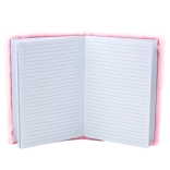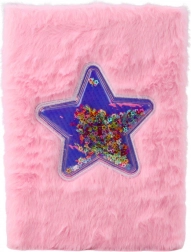 A borító puha, kellemes anyagból készült intenzív rózsaszín színben. A közepén egy átlátszó csillag alakú applikáció található, amelyben színes konfettik mozognak szabadon minden jegyzetfüzet mozgatásával. Ez a részlet megkülönbözteti a terméket a klasszikus jegyzetfüzetektől.