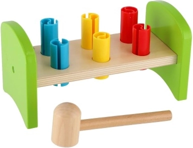 Ez a színes fa kalapálható játék műanyag csapokkal a Classic World cégtől kiváló eszköz gyermekei motorikus készségeinek fejlesztéséhez. Az új design, amely egyesíti a stabilitást és a játékosságot, rengeteg szórakozást nyújt a gyermekeknek.