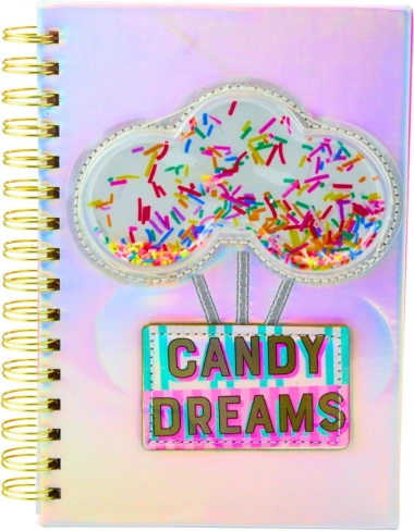 Candy Dreams notebook egy egyedi termék, amely ötvözi a funkcionalitást a modern és eredeti dizájnnal. A holografikus borítót egy nagy, felhő alakú felvarró díszíti színes műanyag édességekkel, ami varázslatossá teszi a notebook megjelenését.