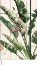 Élvezd a jegyzetfüzet eleganciáját a kemény, matt borítóval, amelyet nagyméretű zöld levelek valósághű mintája díszít világos háttéren. A középen elhelyezett „Let life grow” felirat pozitív töltetet és finom energiát biztosít.