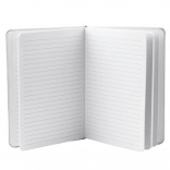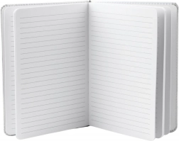 Belsejében 80 finoman vonalas lap található, amely ideális jegyzetfüzetként, naplóként, tervezőként is használható. A praktikus gumi tartja zárva a jegyzetfüzetet és a szalag könyvjelzőként szolgál.