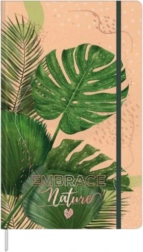 Az elegáns, trópusi monstera levelek motívummal ellátott jegyzetfüzet kiváló választás mindennapi feljegyzések, feladatok és tervek írására. Kemény, bézs és zöld borító „Öleld át a Természetet” felirattal, amely egyedi stílust kölcsönöz.