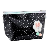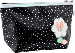 Stílusos mézeskalács és kozmetikai táska fekete színben csillogó részletekkel praktikus kiegészítője a mindennapi használatnak. Univerzális dizájnja lehetőséget nyújt arra, hogy iskolaszerek vagy apró kiegészítők tárolására is használható legyen. Erős cipzárja és praktikus karabineres fogantyúja kényelmesen rögzíthető a hátizsákhoz vagy viselhető a csuklón.
