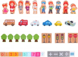 Különféle épületek és figurák segítségével a gyerekek megismerhetik a szakmákat és a városi infrastruktúrát.