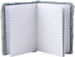 A puha borító kellemes tapintású plüssel van bevonva szolid szürke árnyalatban, amely különleges karaktert kölcsönöz a jegyzetfüzetnek. A borító közepén található csillogó csillag megváltoztatja a színét és kontrasztot képez a puha anyaggal.