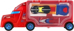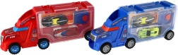 A műanyag kamion-szállító rengeteg akciót és rendszert visz a gyerekek játékába – az átlátszó dobozban két mini autót és kiegészítőket vihetnek magukkal, a lehajtható rámpával pedig könnyedén fel- és lerakodhatnak. A szabadonfutás elemek nélkül is egyenletes gurulást és kényelmes irányítást biztosít.