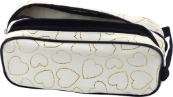 Fehér iskolai tolltartó arany szívecskékkel, kétrekeszes