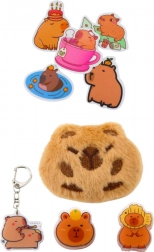A tolltartót tartós anyagból készítik, amely biztosítja a hosszú élettartamot. Elegáns bézs színe különböző stílusokhoz illik. Továbbá tartalmaz egy plusz kapibarát is, amelyet a tolltartóhoz, hátizsákhoz vagy ruhához lehet csatolni. A kiegészítő készlet magában foglal egy kapibarás motívumú kulcstartót, két csipeszt és öt kapibara matricát.