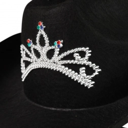 Az elegáns fekete cowboy kalap tökéletes kiegészítő minden western stílus rajongó számára. Kiemelkedően ezüst koronával van díszítve, amely vonzóvá teszi a kalapot. A kalap magassága 14 cm, mely kényelmes viseletet biztosít. A kalap felnőttek számára készült. Ezzel a kalappal mindig a figyelem középpontjában leszel, legyen szó karneválról, tematikus partiról vagy koncertről.