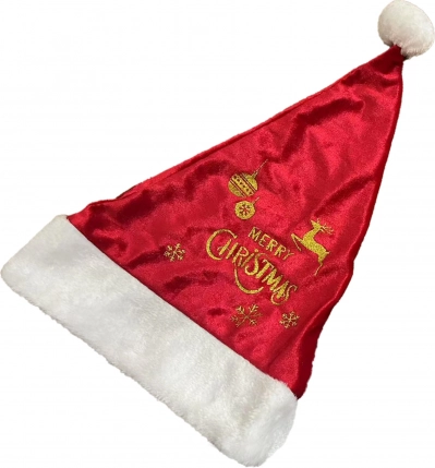 Ez az elegáns karácsonyi sapka remek kiegészítő minden karácsonyi alkalomra. Piros alapját díszítő arany nyomat díszíti, ami vonzza a figyelmet. A tetején lévő fehér bojt hagyományos megjelenést kölcsönöz a sapkának.