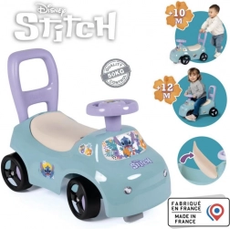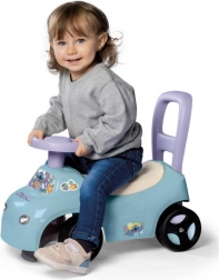 Stabil bébitaxi autó formában Stitch motívumokkal, amely 2 az 1-ben funkcióval működik - bébitaxi és járássegítő. Remek választás a kis utazóknak.