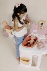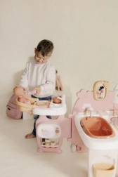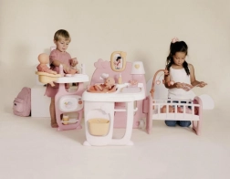 A fürdőszoba levehető kádat és pelenkázó asztalt tartalmaz, míg a konyha mosogatót nem működő csappal, tűzhelyet és mikrohullámú sütőt tartalmaz polcokkal. A hálószoba babaággyal és forgó hintával van felszerelve, foszforeszkáló lámpával.