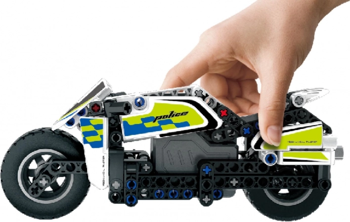 A modell 193 minőségi műanyag elemet tartalmaz, amelyekből valósághű rendőrségi motor építhető, készen bármilyen bevetésre. Az érthető útmutató és az okosan tervezett elemek az építést szórakoztatóvá és a fiatalabb építők számára is elérhetővé teszik.