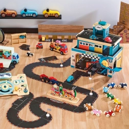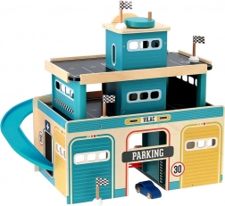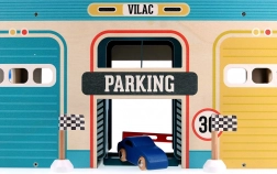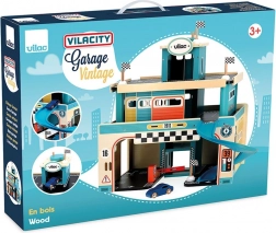 A Vilacity sorozat vintage stílusú fa garázsa végtelen játéklehetőséget kínál a gyerekeknek. A tolóajtóknak, autóliftnek és spirál pályának köszönhetően a gyerekek: