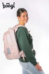 Stílusos Baagl Skate Max Creamy iskolai szett, amely tartalmazza a hátizsákot, tolltartót és tasakot, ideális választás minden diáknak. Kényelmet és biztonságot nyújt a csúsztatható hátrendszer és a fényvisszaverő elemek révén.