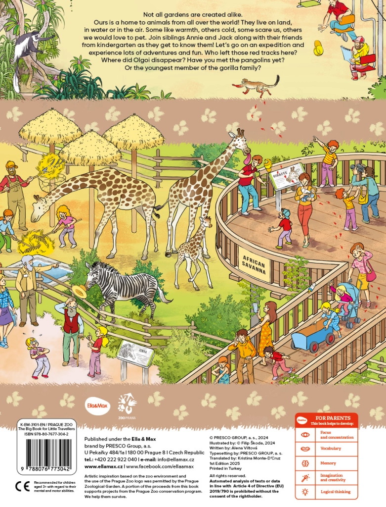 Ezzel a csodálatos könyvvel belátogathat a világ egyik legszebb állatkertjébe, a Prágai Állatkertbe. Itt nemcsak a sokféle állatfajjal találkozhat, de felfedezhet lebilincselő történeteket is, amelyek az állatok titokzatos világába vezetnek. Vegyen részt egy kalandos expedíción, és fedezze fel a vörös nyomokat, amelyek lenyűgöző tobzoskákhoz vagy a gorillár család fiatalabb tagjához vezetnek.