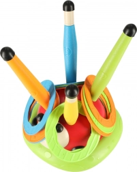 Szórakoztató és sokoldalú játék gyerekeknek, ami három tevékenységet ötvöz a motoros készségek és koordináció fejlesztésére. Lehetővé teszi a gyerekeknek, hogy ugráljanak, gyűrűket dobjanak és nyilakat lőjenek ki, mindezt szórakoztató dallamokkal.